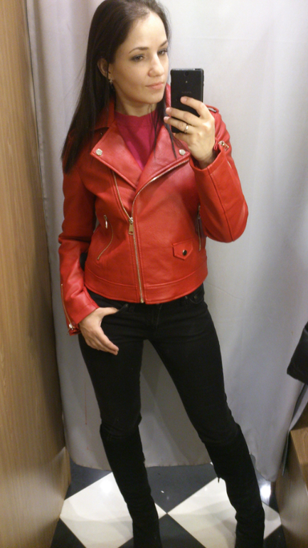 чёрная как базовая- со всем смотрится шикарно, и с вечерним платьем на шпильках, и толстовкой и кедами- а красная для настроения можно!;) у меня чёрная косуха есть сколько себя помню- ещё в Викториас секрет покупала 👍🏻