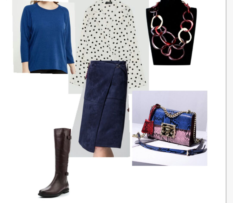 Синяя кофта у меня есть похожая, рубашку в горох упустила, клетчатую юбку буду шить из шерсти, на подкладке и чуть длинее (чтобы была теплая).