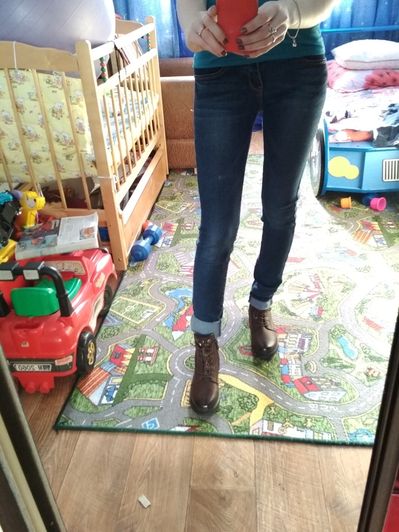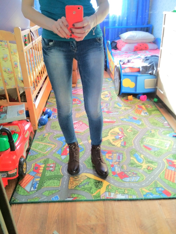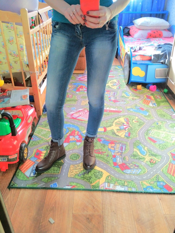 У вас красивые ноги, их ничем не испортишь. К ботинкам подойдут однотонные джинсы с поворотами.