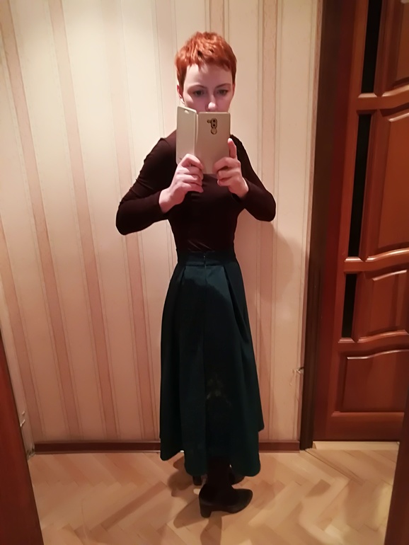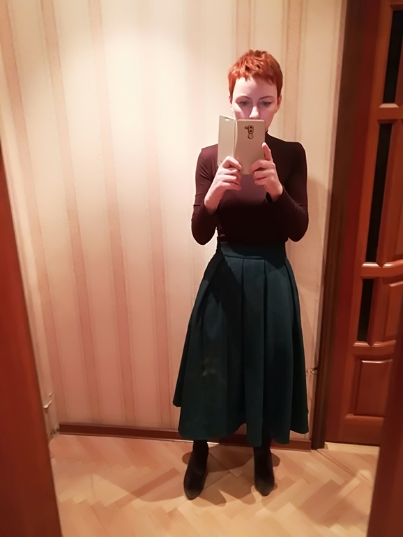 Юбка шик!!!! Мне нравится, что не в пол. В пол это хорошо, но сейчас, как- то вернулись вот эти юбки миди. Я с блузками ношу. Показывала недавно. У меня, как раз такой длины юбки.