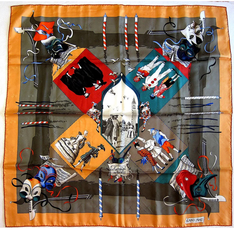 первый это карнавал в венеции:) а вообще просто пересмотрите все платки hermes в том же ебей и удивитесь, я каждый раз поражаюсь, казалось бы все видела, а нет этих дизайнов тысячи и на любой вкус один краше другого. А китайцы они делают руками, а не мозгами:) поэтому банально все идеи слизывают:)