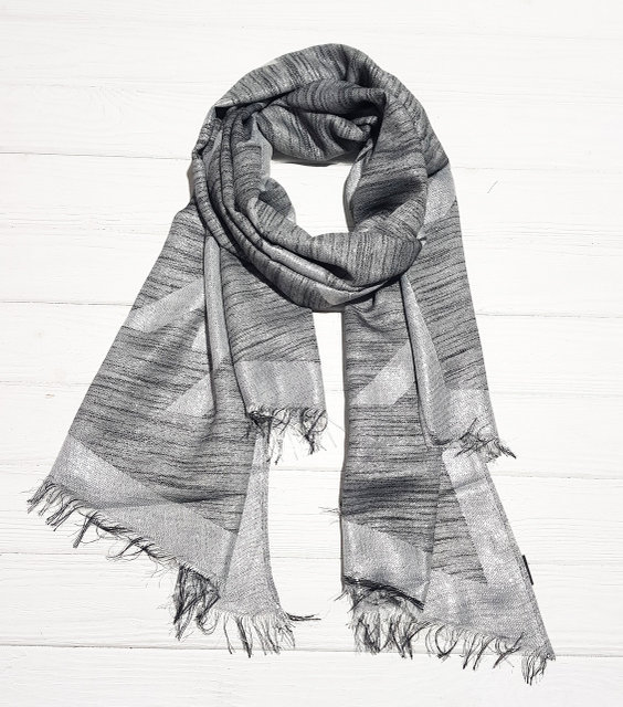 Палантин будет у лица, логичнее его к лицу подбирать, а не к кроссовкам, которые будут на ногах) Любой цвет станет прекрасным акцентом к этой черно-белой гамме.