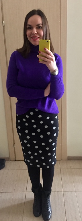 Отлично получилось!с ботильонами полегче бы ещё примерить,когда погода позволит/в июне))))колготки не с этой юбкой.