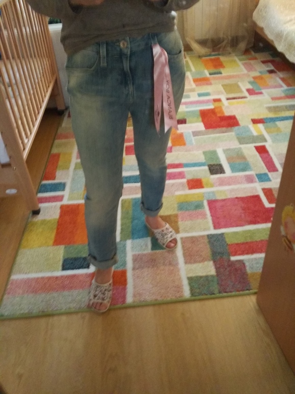 Сегодня была в Фамилии в поисках удобных джинс. Хотела или бойфренды или мом'с джинс. Бойфрендов довольно много, мом'с вообще не видела. Фирма представлена в основном одна, какая-то недорогая. Встречаются джинсы реплей, форнарина, резервед, дизель. Последние очень дорогие. Размеры все перепутаны вхлам, нужно рыться среди сотен почти одинаковых джинс ((( В общем набрала в примерочную штук 10, но подошли более-менее лишь одни. Взяла, но немного смущает вид спереди, как будто чуть мот ня висит. Или для бойфрендов это нормально? Девочки, посмотрите пожалуйста, что скажете? А то сдам пока не поздно.