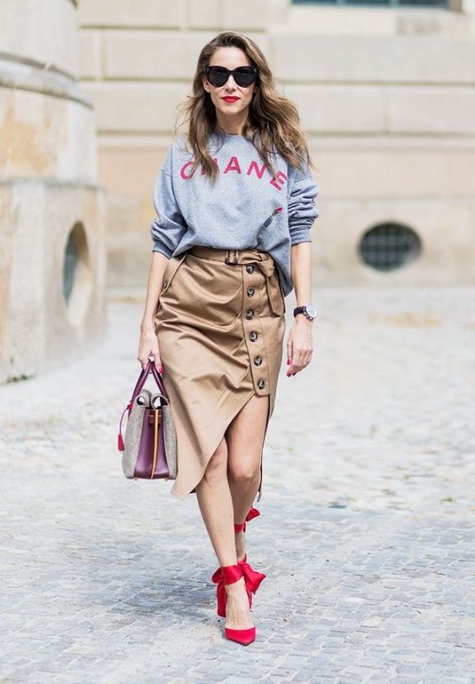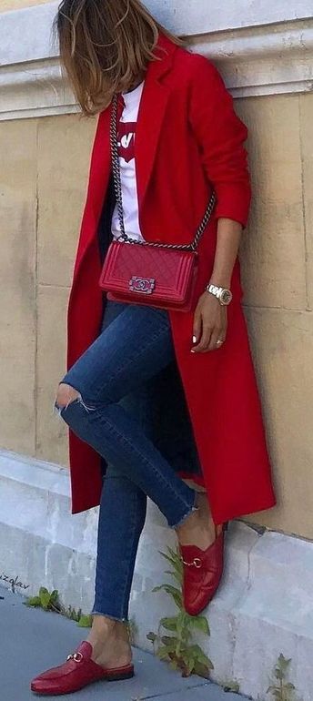 Старайтесь использовать красный там, где ваша фигура "хвастается" своими достоинствами. И не говорите мне, что у вас их нет. Они есть у всех! И их больше, нежели особенностей;) Если красный цвет для вас - это очень ярко, смело и вызывающе, но хочется добавить "перца" в образ, то красный, в качестве акцента (сумка, обувь, брошь, ремень) Будет как нельзя кстати.