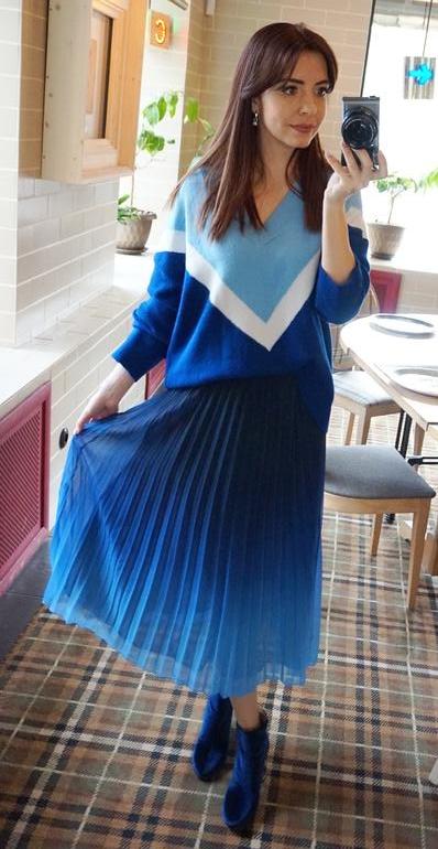 Юбка и свитер Страдиварус, ссылка на юбку тут. https://www.stradivarius.com/ru/для-женщин/одежда/коллекция/юбки/смотреть-все/плиссированная-юбка-с-эффектом-деграде-c1020047067p300549006.html?colorId=012