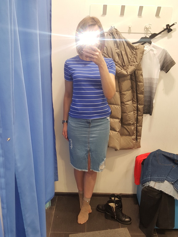 ПосоветуйтеДобрый вечер. Продолжаю искать джинсовую юбку , а также в поисках пальто. Прошу мнение со стороны. Юбка модель одинаковая просто фото в разных условиях)