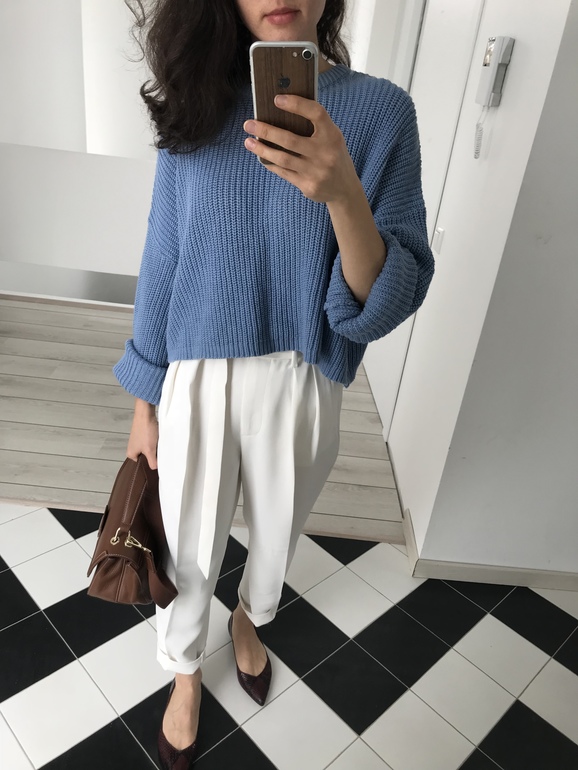 И со свитером хлопковым укорочённым. Наталья недавно показывала похожее сочетание.
