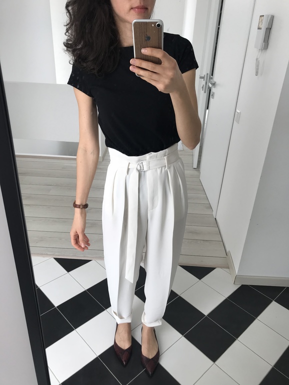 И брюки. Очень люблю такой фасон. И ноги удлиняет и попу немного увеличивает. Ну в общем, люблю я такое ) и мне как раз светлые нужны были на лето.