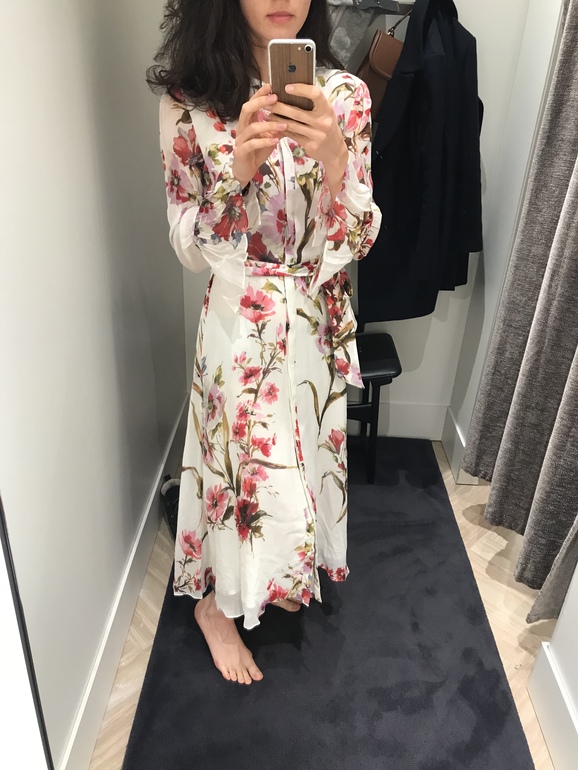 Покажу немного весенних покупок. Кому там цвета не хватило в прошлом посте, специально для вас, милости прошу под кат Во-первых это платье. Немного предыстории, если кому интересно ) Я давно искала подобное. Чтобы легкое, струящееся, длинной миди и с легким цветочным принтом. Совершенно случайно, заглянув на свой любимый сайт в раздел распродажи (под саааамый конец) обнаружила, что они пополнили раздел платья одним новым платьем. Его я раньше там не видела и в основной коллекции. Ну в общем, мой 34-й размер ) По-моему оно было единственное, потому что тут же после заказа пропало с сайта. Сегодня привезли в магазин. Фото из примерочной