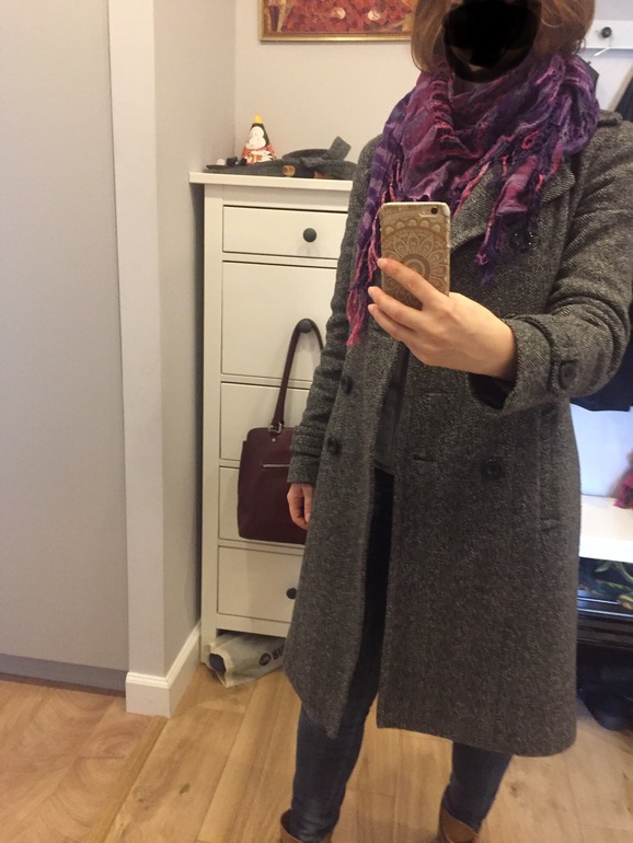 Третий холодный, и немного сливается, не подходит, а вот остальные с расстегнутым пальто выглядят довольно мило. Буднично мило.