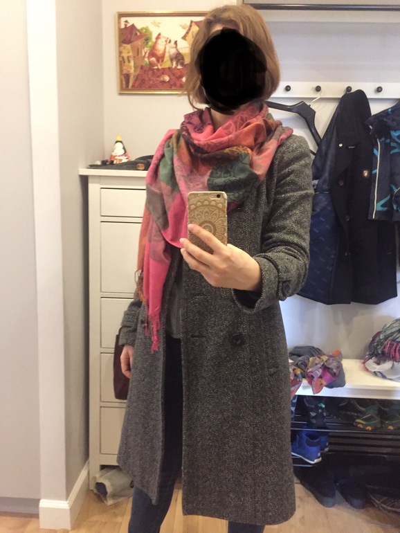 И яркий шарф, чтобы скучность убрать с этого пальто)