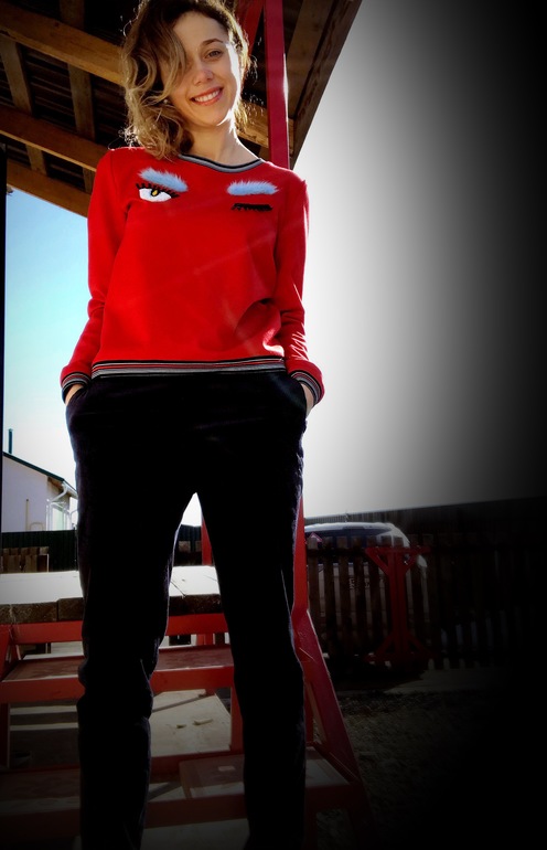 Она подруга и очень талантливая🙈чёрное твидоале это ее работа , и белое с Перьями и этот свит .....охххх, а какой мы с ней бомбер создали 🤤🤤🤤и юбку🙈ахахах