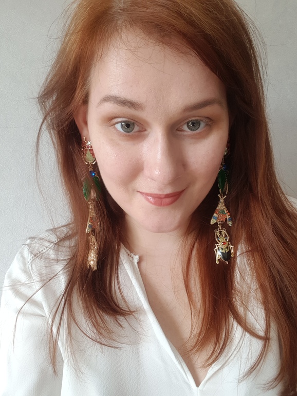 Жаль, рыжая девушка в черном - это бомба, на мой взгляд! Тогда бы интересно было посмотреть на вас в зеленом с этими серьгами☘☘☘