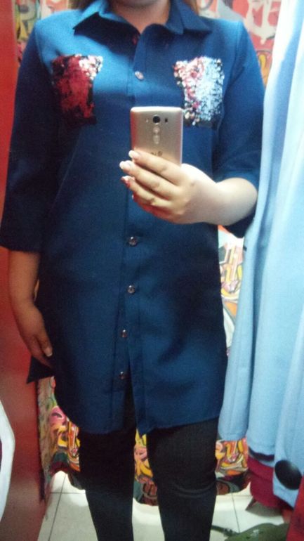 ПримерочнаяДоброго времени дня! Наш городок помешался на пайетках. Детские бутики переполнены вещами с пайетками. Ну и взрослые вещички тоже. Купила вчера платье- рубашку. Короче оно короткое планирую носить с черными лосинами и с лаковыми черными ботинками. Так вот как оно выглядит ? На фото на мне на 50р. А купила 48 . поменьше. И сумка такая как вам ,