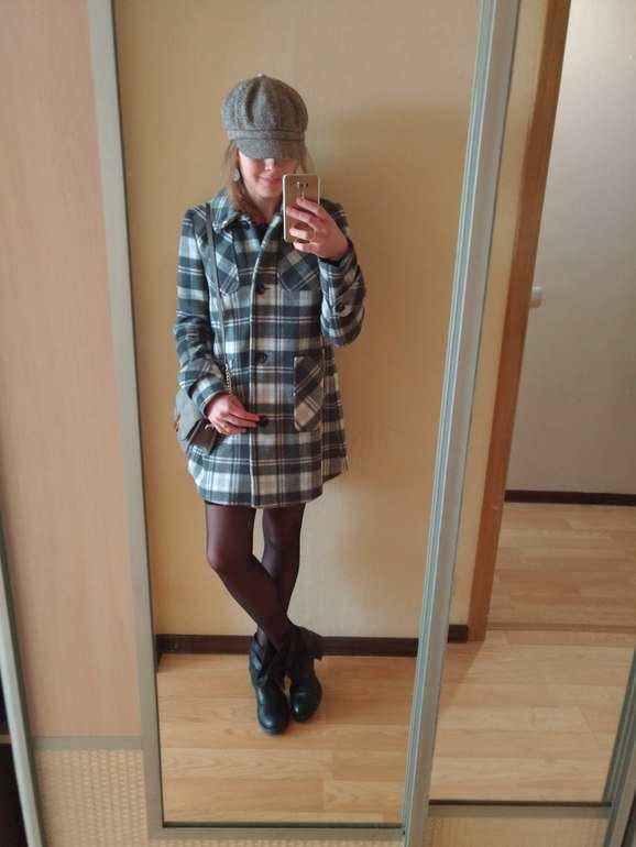 В пальто и моем шерстянном чуть клешенном к низу платье