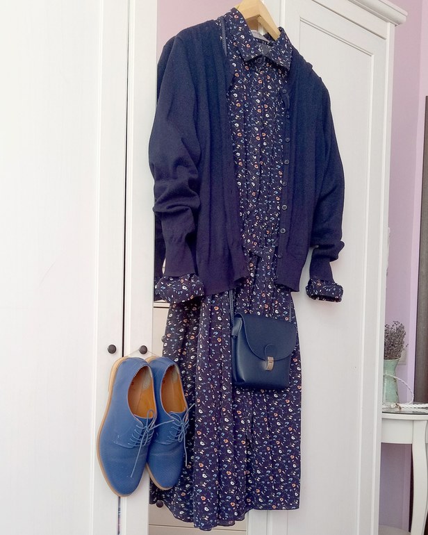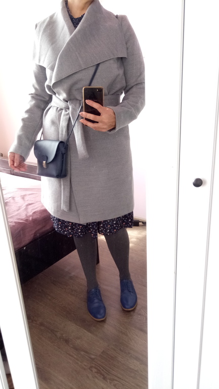 Серые колготки с синими туфлями в этом образе чет совсем по деревенски. На синие лучше замените, в тон обуви