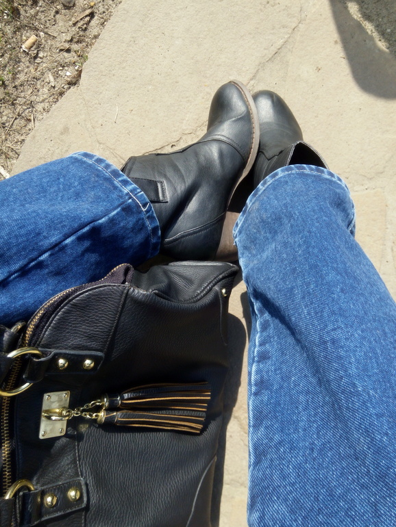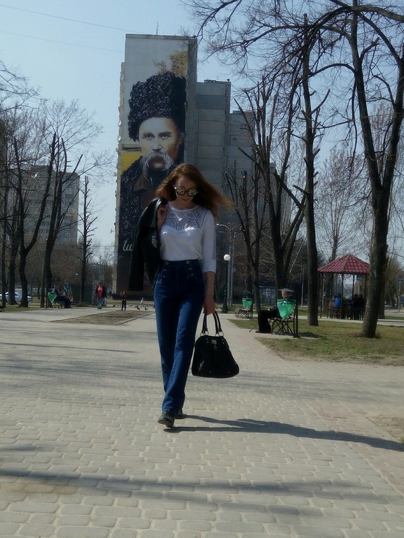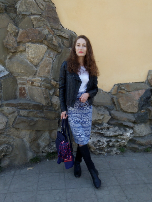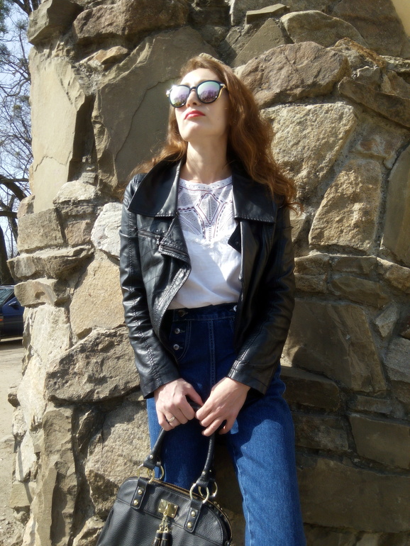 На прогулкеКожаные куртки я не очень люблю, для меня это вещь из разряда надеть 1-2 раза в год. Но вот на этой неделе появилось кожаное настроение)