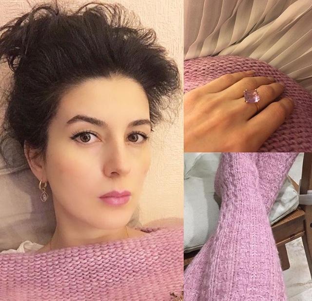 Ниже прошлогоднее фото, но кофта та же, что на верхних фотографиях. Под нее надеваю аметист. Кстати по гороскопу это мой камень. И я тоже всегда плевалась глядя на него). Пока не встретила СВОЙ оттенок. Вот правда говорят, у мужчин белое, черное, красное, а у женщин миллион оттенков каждого цвета)))