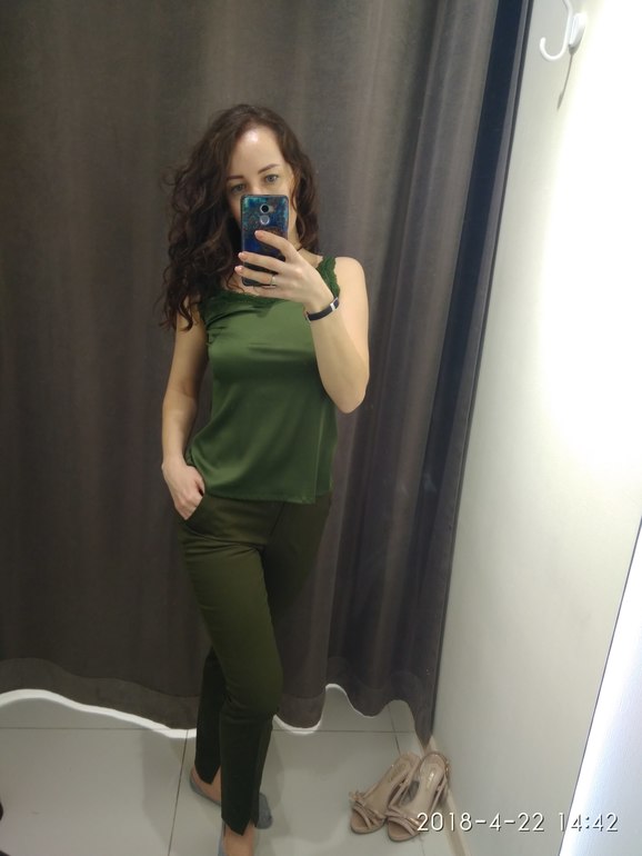 Спасибо,да зелёный топ маленький в груди,на размер больше надо . На счёт платья,согласна,там освещение плохое очень и я слилась с ним.