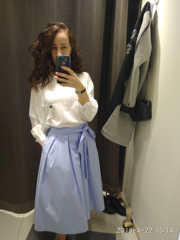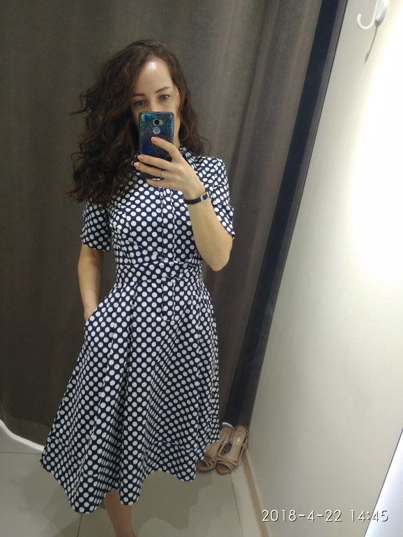 Понравились юбка со второй блузкой. Горох что-то слишком "горошистый" - прям горошина на горошине. Первое платье классное, но не пойму подходит ли цвет к лицу, а может в примерочной свет не оч удачный.