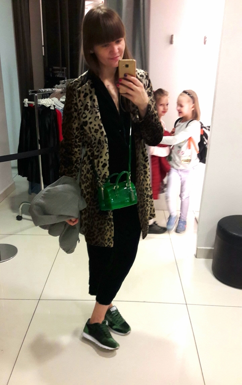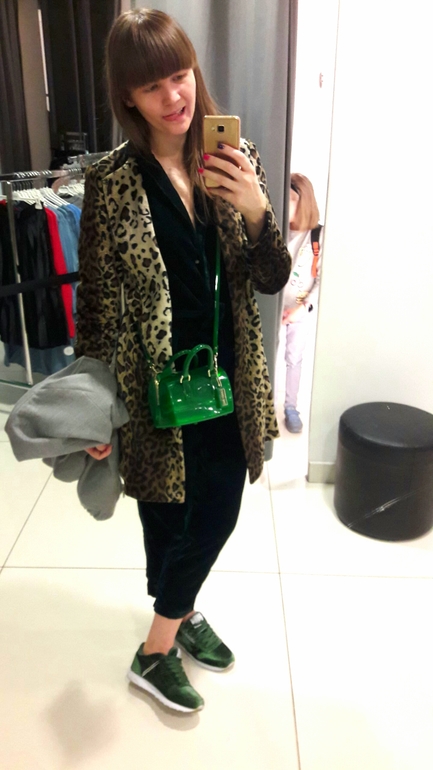 У меня пока только кроссовки леопард в розах )))) Почему-то стесняюсь на улицу ходить в леопарде, решила с малого начать. Очень хочу леопардовые туфли, но пока не нашла свои. Из животного только те лосины-зебры )) На тебе очень здорово, красивое сочетание с зеленым.