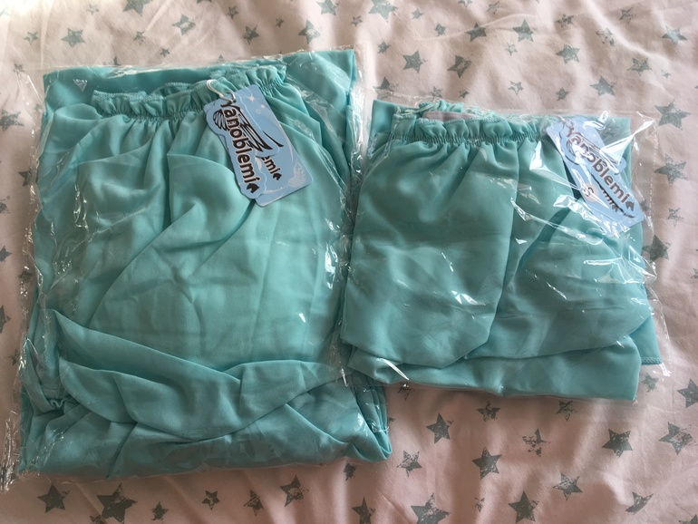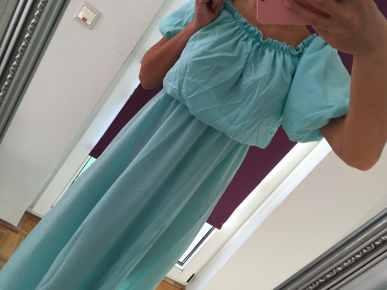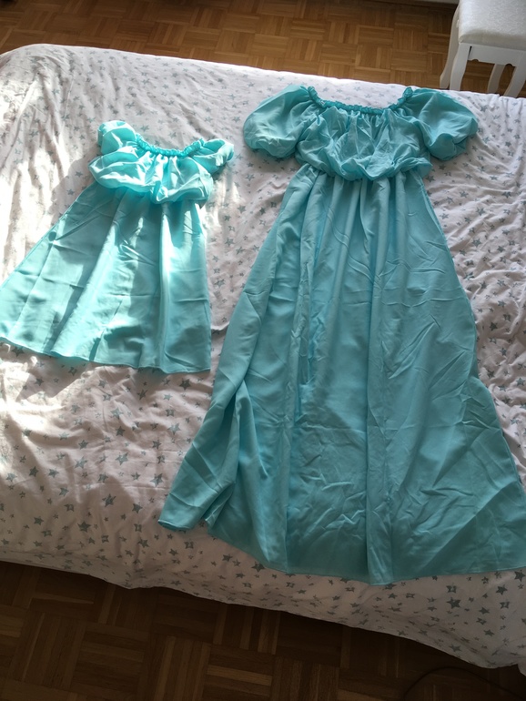 Оба сарафана с доставкой стоили 15€. Есть еще другие цвета: розовый и желтый.