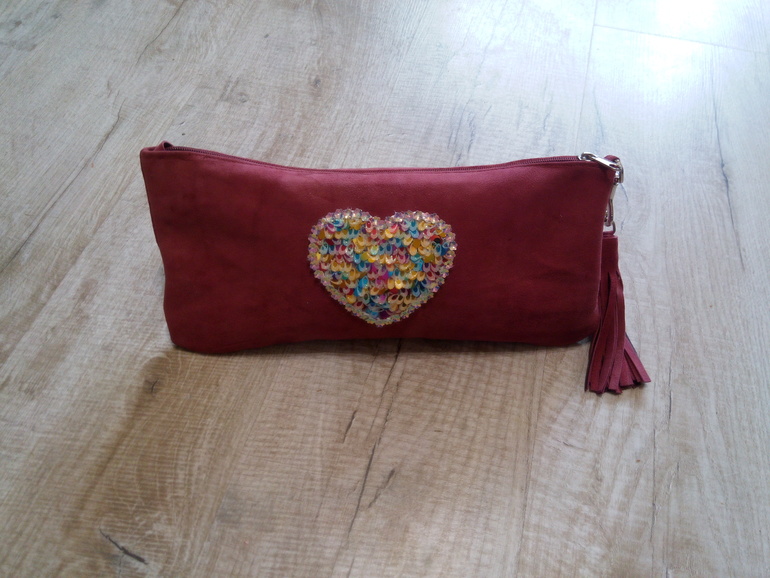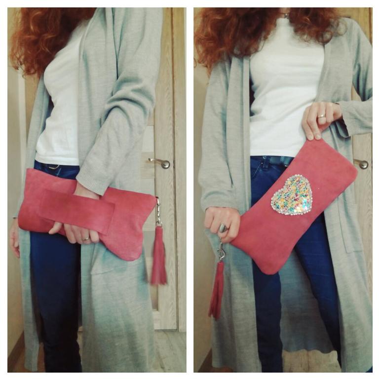 Вторая в виде клатча. Каркас решила не делать, поэтому сумка имеет мягкую форму. С одной стороны такая вот ручка хватайка, с другой стороны аппликация.