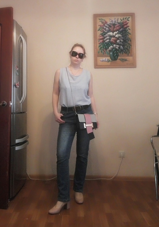 ПосоветуйтеРешила надеть блузу с другой одеждой и аксами. Первый вариант: с джинсами высокой посадки, как подсказали девочки.