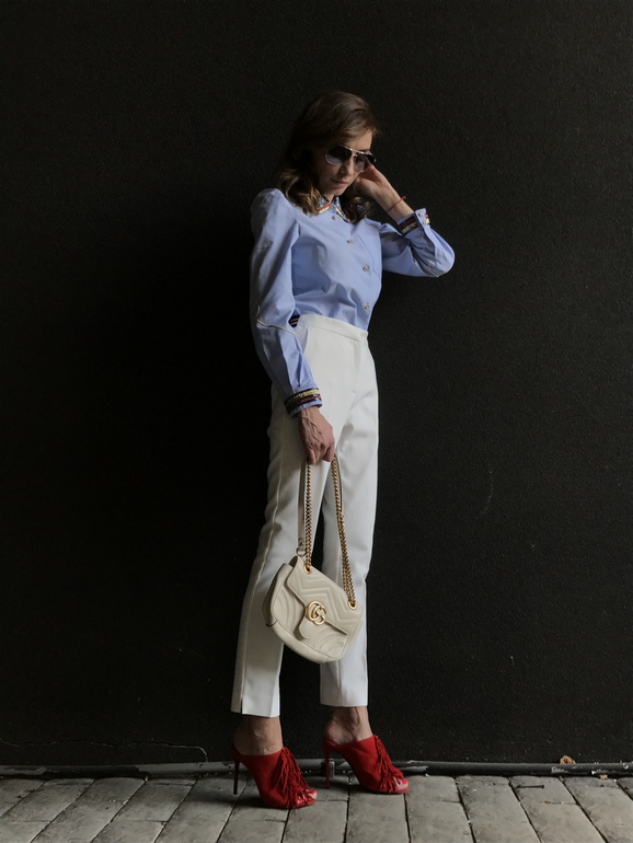 В который раз пересматриваю ваш пост. Образ с белыми брюками, пожалуй, выделю среди остальных, для себя: вы единственная, на ком данные брюки действительно сидят как положено, достойно (не в обиду другим девочкам бб).