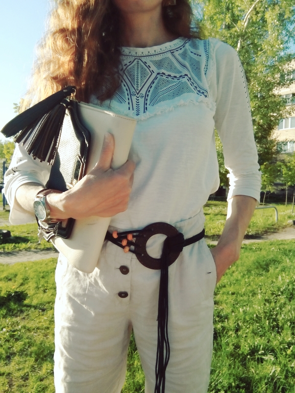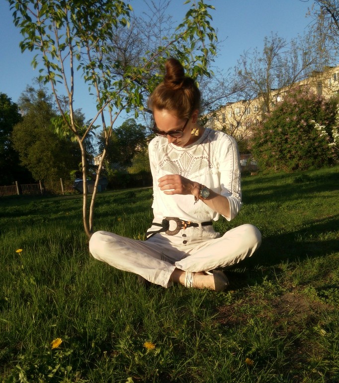 На прогулкеВесна для меня отдушина в плане гардероба. Поскольку я мерзляк, то всю зиму ношу практически один свитер и штаны, чтобы было тепло. Надоедает до чертиков. Весной же и летом могу переодеваться по несколько раз в день)) Данный пост можно назвать "одна неделя из жизни неработающей мамы"))