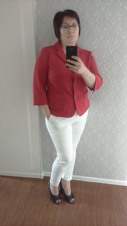 Хотела дать комментарий по красному жакету! У него не правильная для вас длина! Жакет должен быть не выше самого широкого места на бедрах! Это важое стилистическое правило!