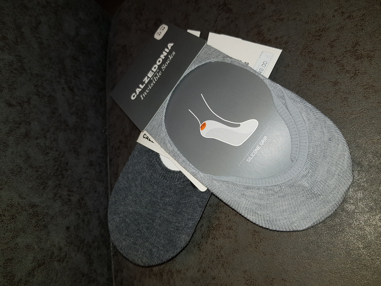 А еще я тут пошла посмотреть какие-нибудь следочки, потому что капроновые носки какие-то уродские у меня 💀которые постоянно сползают. И в кальцедонии нашла хлопковые следки с силиконовыми вставками на пятке!