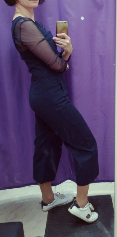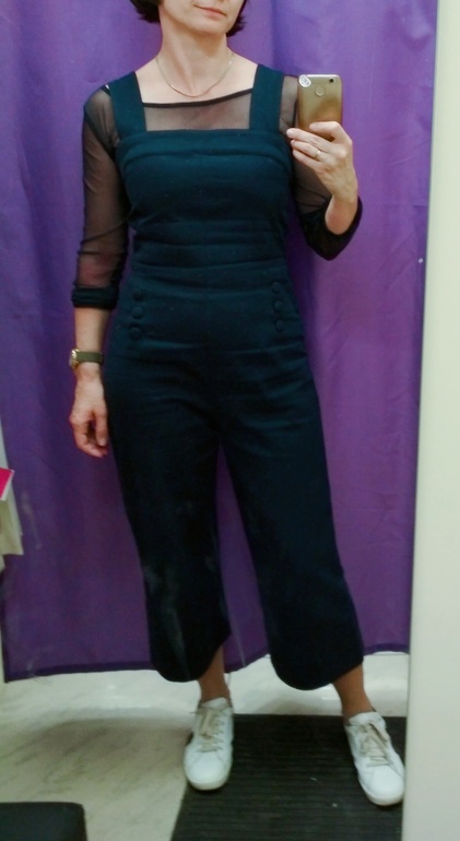 Синий комбез ношу еще с белой прозрачной кофтой. Летом планирую с футболкой. Он в обтяжку, блузку не одеть под него.