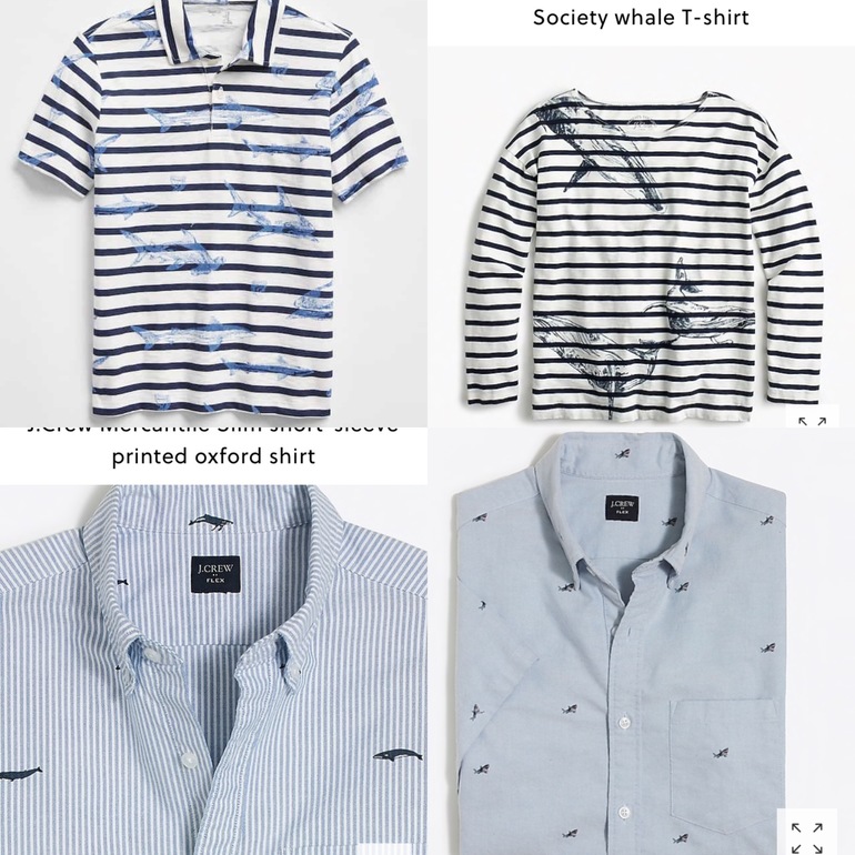 Это ошибка наверное, 2 нижние это мужские рубашки, а женское это в правом верхнем углу фото с китами