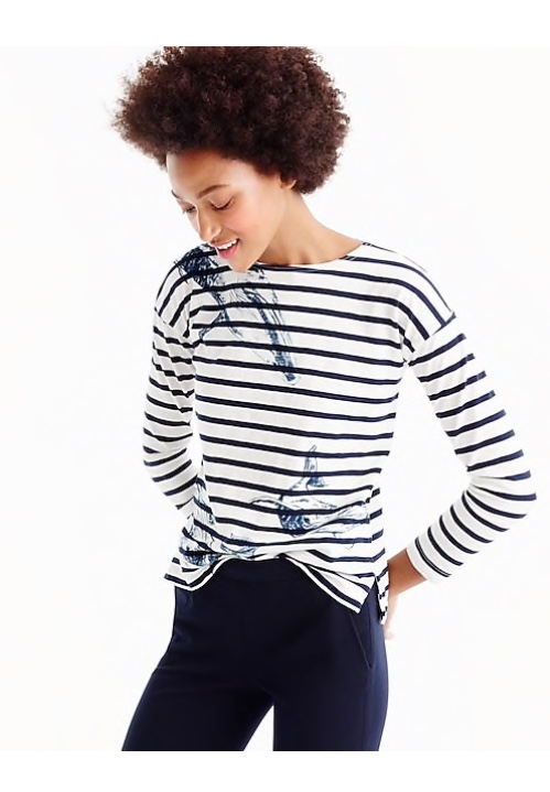 По-моему, для папы, чтобы и крупная полоска, и крупные дельфинчики/киты - будет слишком детский/женский образ, перебор. Надо или только крупную полоску (то есть просто тельняшку), или только рисунок (футболка-поло).