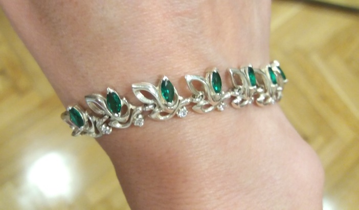 Наконец-то надела серебряный браслет, изготовленный на заказ. Подарок мужа. Все зелененькое. ))