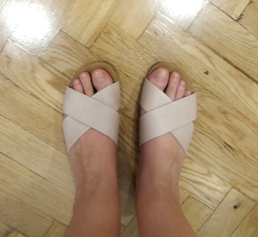 Когда совсем жарко, в ход идут бледно-розовые тапки.