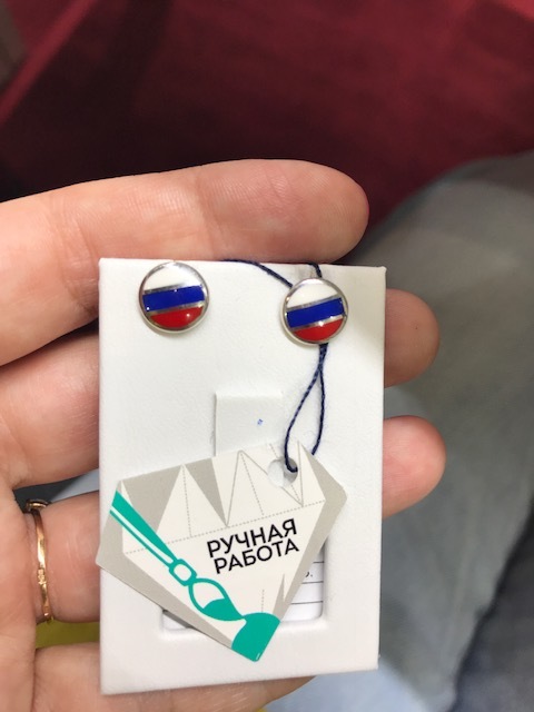 Патриотичные серьги пусеты в цвет флага России, интересная задумка! Хорошо видны на ушке .