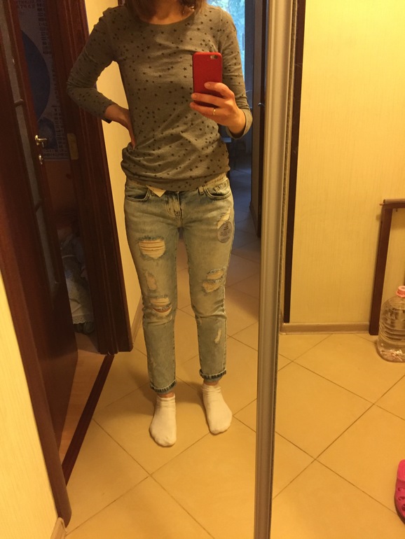 ПосоветуйтеДорвалась до рваных джинсов) купила и лежат неделю уже... не могу понять, что именно, но что-то смущает? Сдать или оставить.