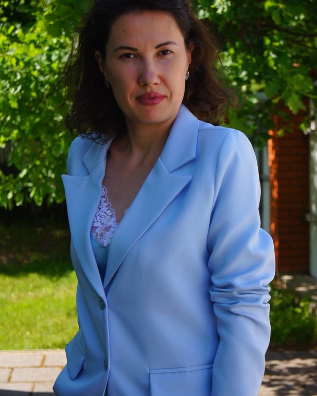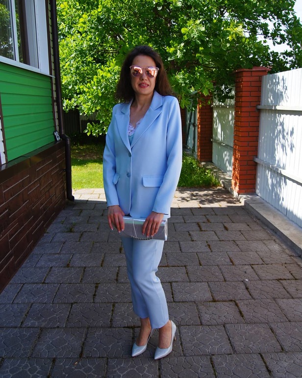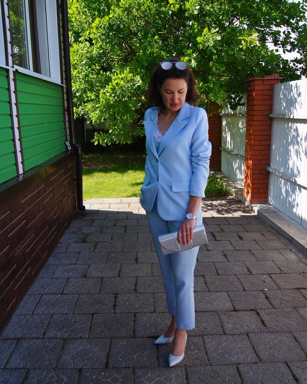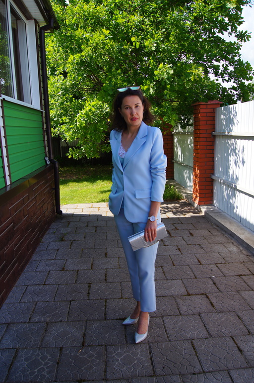Хороший комплект! Я бы предложила не застегивать жакет, чтобы уменьшить строгость костюма