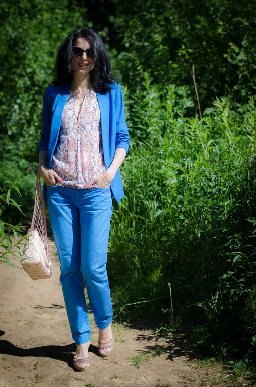 Многие смотрю обижаются, что не подписывают вещи в посте. Ну мне например почти нечего подписывать. У меня либо сшитое, либо купленное давно и поэтому неактуально название магазина. Вот здесь на фото пиджак и брюки покупала в Германии, в 2010 году. В H/M кажется....
