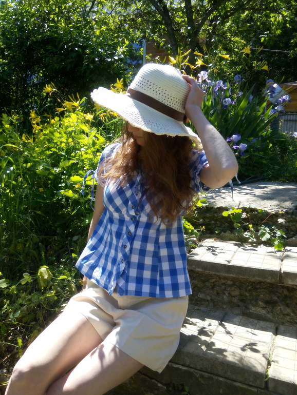 На прогулкеКлетка, всевозможные цветочные принты, оборки и воланы, шляпы, панамы и платки, натуральные материалы - лен, ситец, хлопок, простота кроя и фасонов - все это характерные особенности деревенского стиля в одежде. Идеальный вариант для дачного отдыха или загородной прогулки.