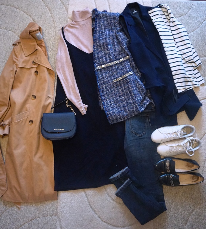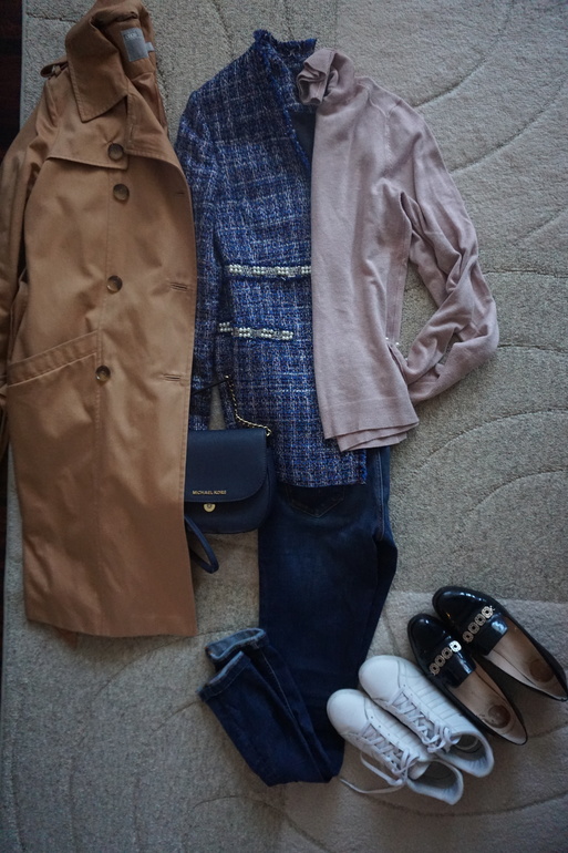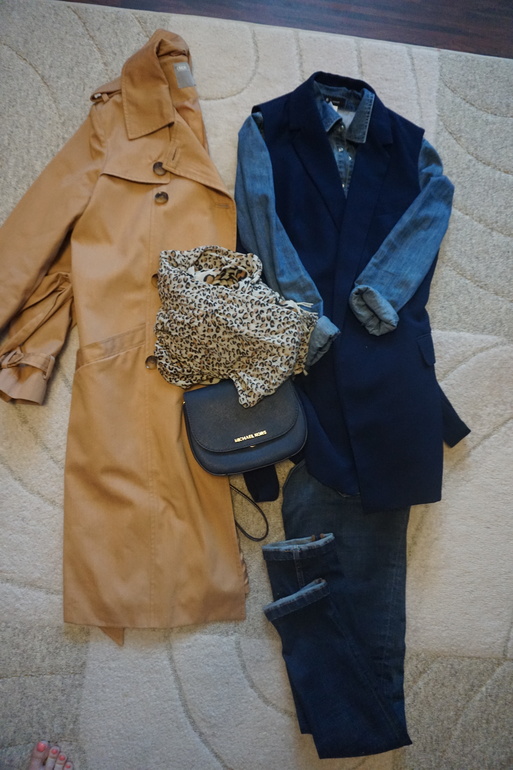 Получилось 6 вариантов. Потом мне показалось, что все же 2 верха это как-то мало и решила взять еще дополнительно молочный джемпер и джинсовую рубашку, все равно много места не занимают ))