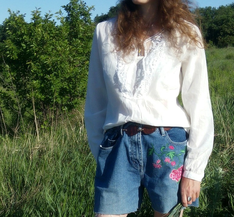 Эту рубашку декорировала сама. Была обычная джинсовая.