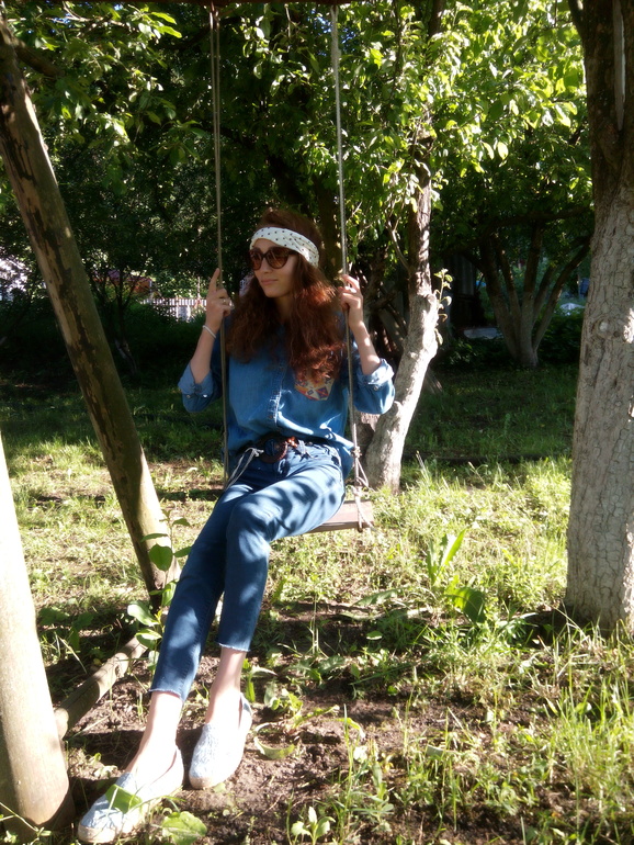 Вспомнила, в меня именно в таком образе влюбился муж в 2010🙈😁помните, ещё супер модно было носить повязки с цветком на голову?? у меня целая коллекция была из аксесорайз, и я была влюблена в актрису из дом солнца😻 Клево выглядите, я как раз на даче, надо тоже что-нибудь такое намутить👌