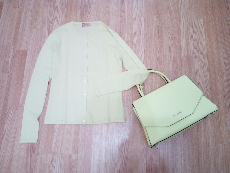 Я б к сумке такую джинсовку прикупила и нежненько и в тему, а так пастельный жёлтый сочетается со всем, но если прям сомневаетесь, браслеты и серьги в цвет вполне дополнят образ