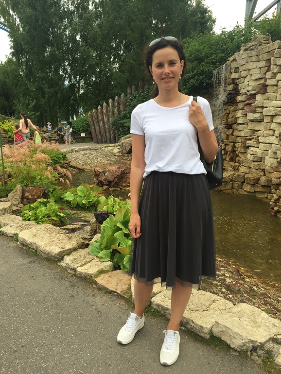 Майка, топы почти любые, футболка, них кеды, слипоны, каблук, ботинки тяжёлые, Куртка кожаная косуха, джинсовка, пиджак. Универсальная вещь, с ней все можно)