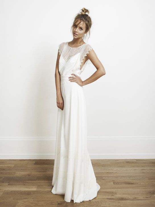Мне кажется, на вас вот такой фасон сядет неплохо. Гляньте венчальные платья "Барышня-крестянка".