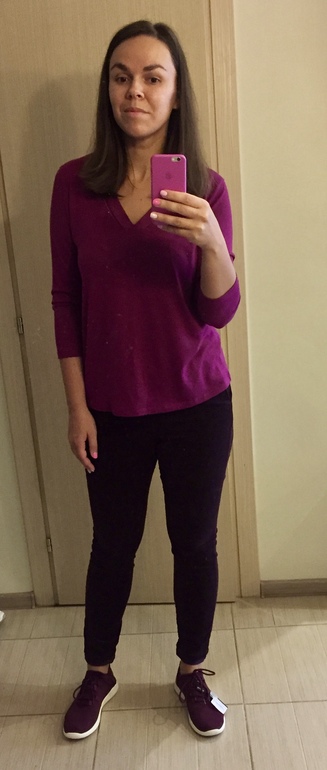 А по фото брюки ну просто идеально :)) все остальное очень хорошо, платье синее немного большое мне кажется. Хотя спереди отлично, но это "магия" фото :)))